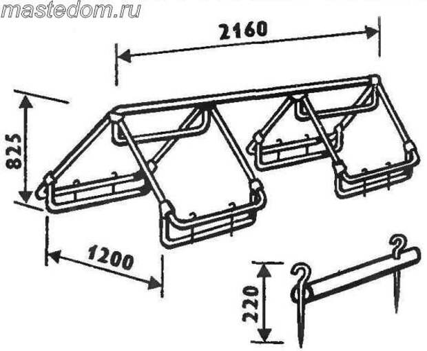 Обратим только внимание на то, что сверху бывшие раскладушки соединены трубой.