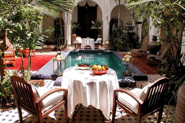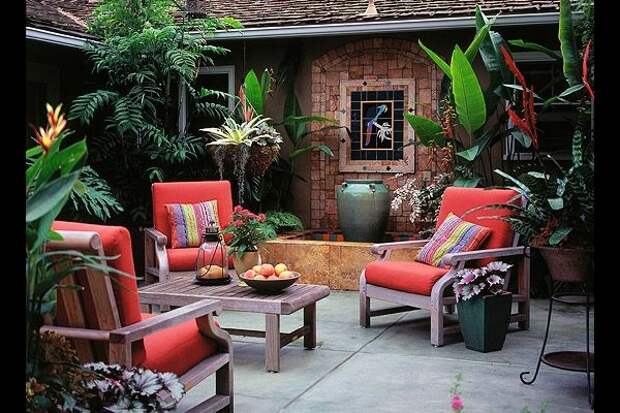 Итальянцы обычно делают зону отдыха в тени. Для этого хорошо подходят ветви деревьев. Тень обеспечивает комфорт, особенно в знойную погоду! На наших родных просторах идеальным местом будет внутренний дворик на реалий идеальным местом будет дворик на открытой площадке. На ней можно поставить зонты, шатры, беседки, диваны и даже бассейн. Внутренний дворик должен быть сокрыт от глаз соседей, иначе никакого отдыха не получится!