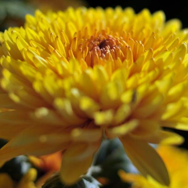 Цветок имеет желтую окраску, сорт одноголовой хризантемы.