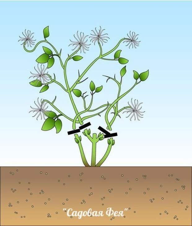 Клематисы обрезают для обильного цветения. Обрезка клематисов зависит от того, на побегах какого года они цветут. Если вы не знаете, к какой группе относится растение, обрежьте его на высоте 1 м. А весной обратите внимание на места отрастания и период цветения.