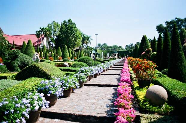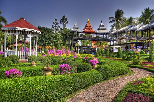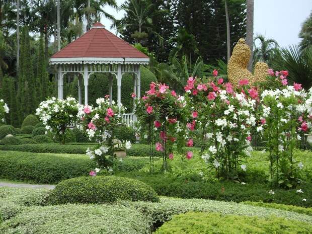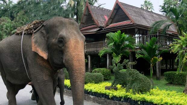Это огромный парк, в котором множество различных орхидей, кактусов, в так же подстриженные деревья самых причудливых форм. Здесь проводится красочное национальное шоу (посмотрели фрагменты свадебной церемонии , тайский бокс, бой петухов, имитация древнего боя на слонах) и шоу слонов. Я с удовольствием покаталась на слоне и понаблюдала за «работой» обезьян - сбором спелых кокосов.