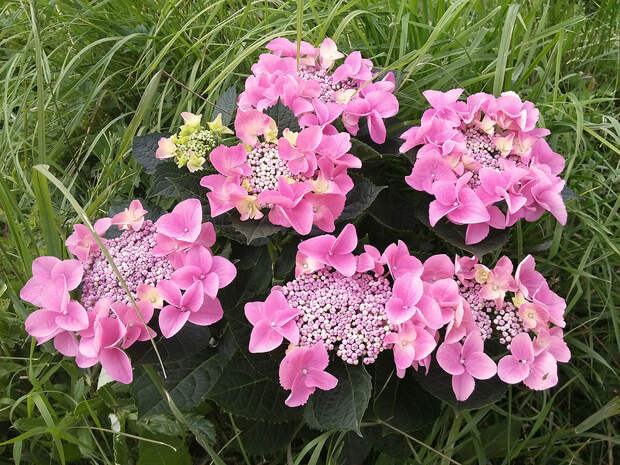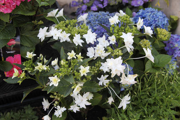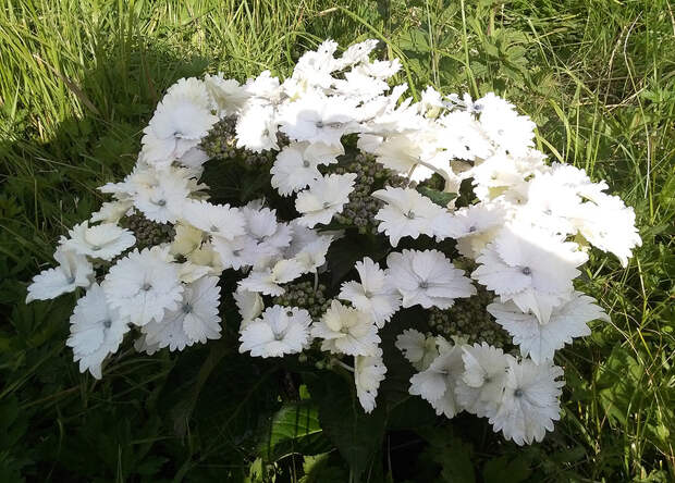 Сорт "Koria". Цвет стерильных цветков (внутри соцветия) со временем становится сиреневого оттенка.