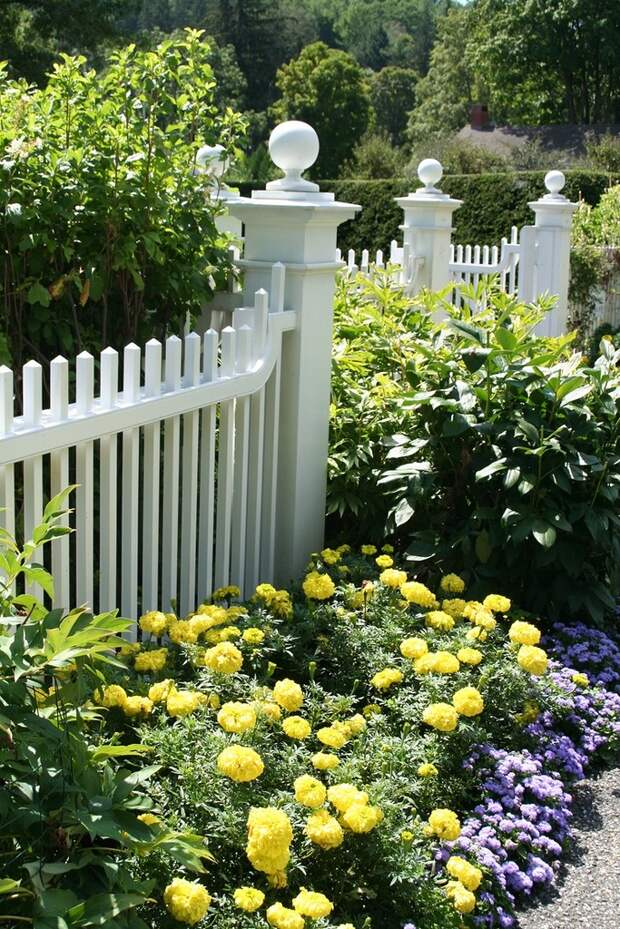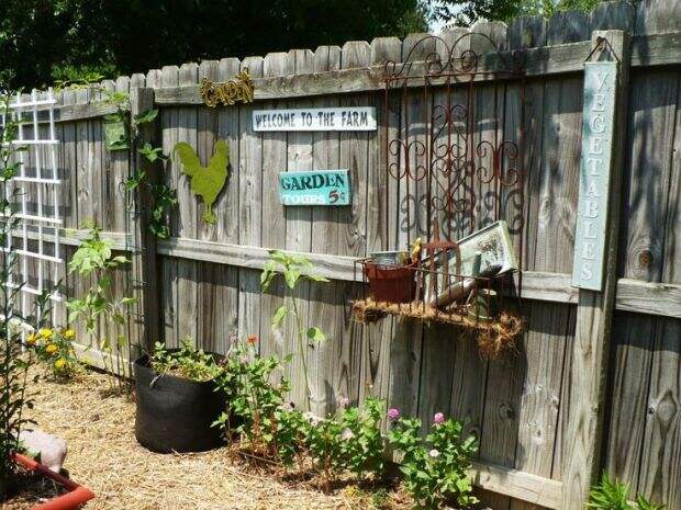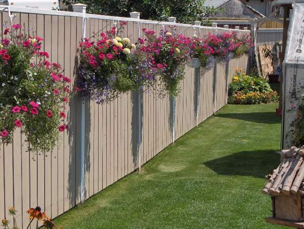 И, конечно даже самый простой забор может стать красивым, если его украсить цветами или декоративными элементами. Можно повесить на забор кашпо с цветами, посадить растения вдоль него, покрасить, выложить мозаику.