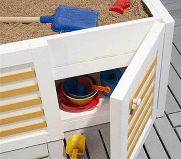 Тем более, в свое время такая песочница может переквалифицироваться в ящик для хранения грушек и симпатичную лавочку.