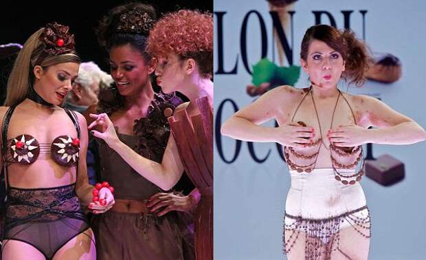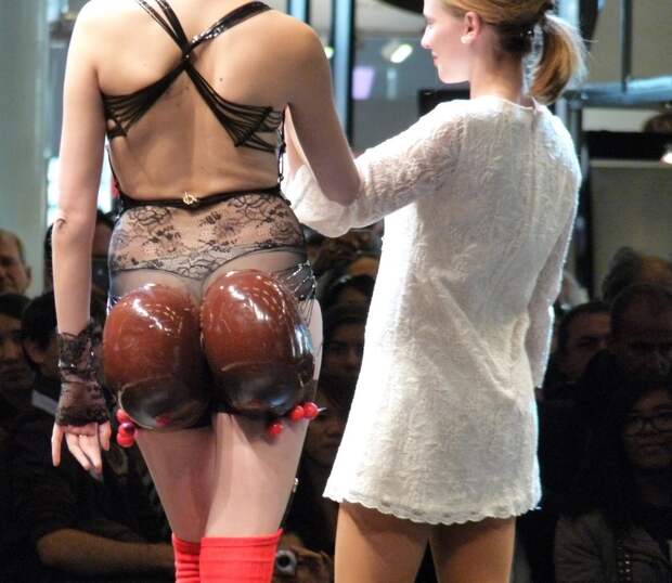 Это было настоящее "барокко-бурлеск" модное шоу с участием моделей облаченных в шоколадное белье.