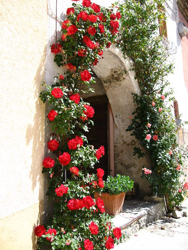Розы как ни одно другое растение приносят в дизайн сада много романтики и красоты. Плетистые розы украшают арки и стены у входа в дом, наполняя чудесным ароматом садовые дорожки.