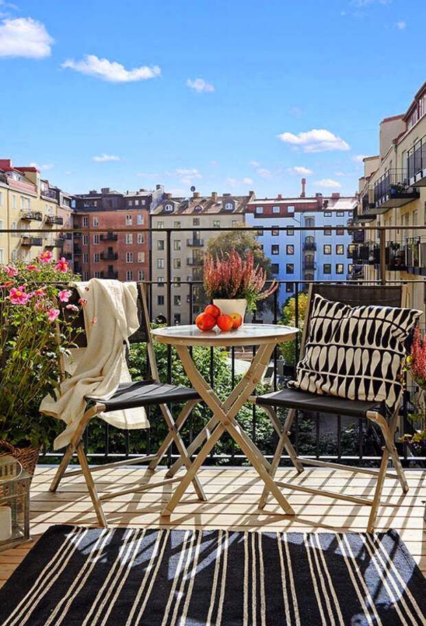 сегодня захотелось подарить вам немножко весенне-летнего настроения, которое уже начало витать в воздухе. Не знаю как у вас, а в наших краях очень долго дождило, а сегодня наконец-то выглянуло солнышко и почувствовалась настоящая весна...такая долгожданная! Если у вас в квартире есть открытый балкон - сейчас самое время подумать о его обустройстве и вдохновиться прекрасными идеями.