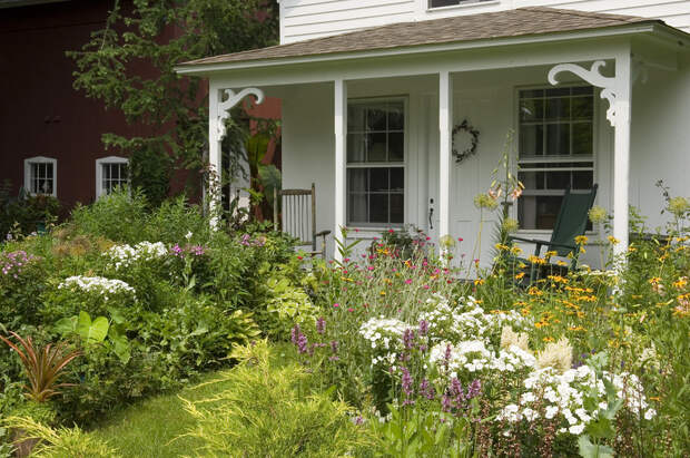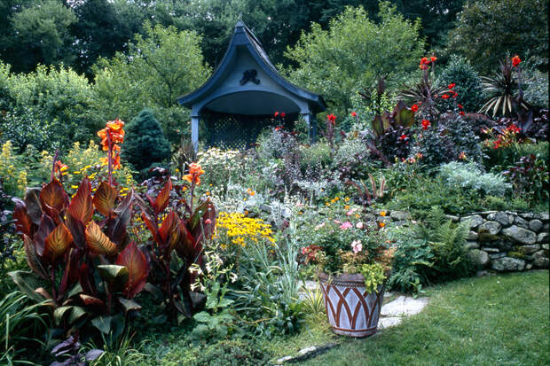 Коттеджные сады – наиболее свободный и демократичный вариант из всего многообразия ландшафтных решений. Это сад для тех, кому нравятся крупные, яркие цветы на клумбах, цветущие плодовые деревья, нарядные грядки с овощами, незамысловатая садовая мебель, естественные материалы садовых дорожек. Правда, ухода такой сад потребует немного больше, чем сад естественный или пейзажный, но те, кому по душе растения стиля кантри, с большой радостью позаботятся о них...
