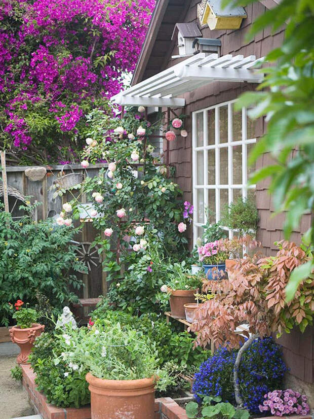Современные коттеджные сады традиционно являются практическими садами, выдержанными в том же скромном ключе, но они уже не совсем утилитарны. В них фрукты и овощи соседствуют с красиво цветущими растениями. И соседство это не просто красиво, но и плодотворно: цветы привлекают насекомых, которые переносом пыльцы оплодотворяют овощные культуры, способствуя богатому урожаю. Обилие насекомых привлекает птиц, которые, в свою очередь, помогают контролировать популяцию насекомых.