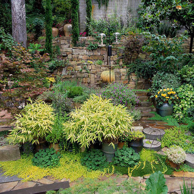 В последнее время в таких садах прочно заняли свое место такие, не требующие никакого ухода, окультуренные «дикари», как тысячелистник, пестролистная сныть, краснолистный подорожник и т.п. Устраивая сад, следует помнить, что хотя цветение в нем достаточно буйное, выглядеть он должен так, словно ему уже сотня лет.