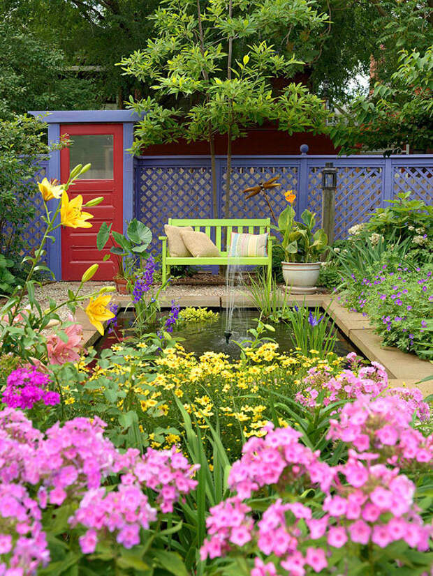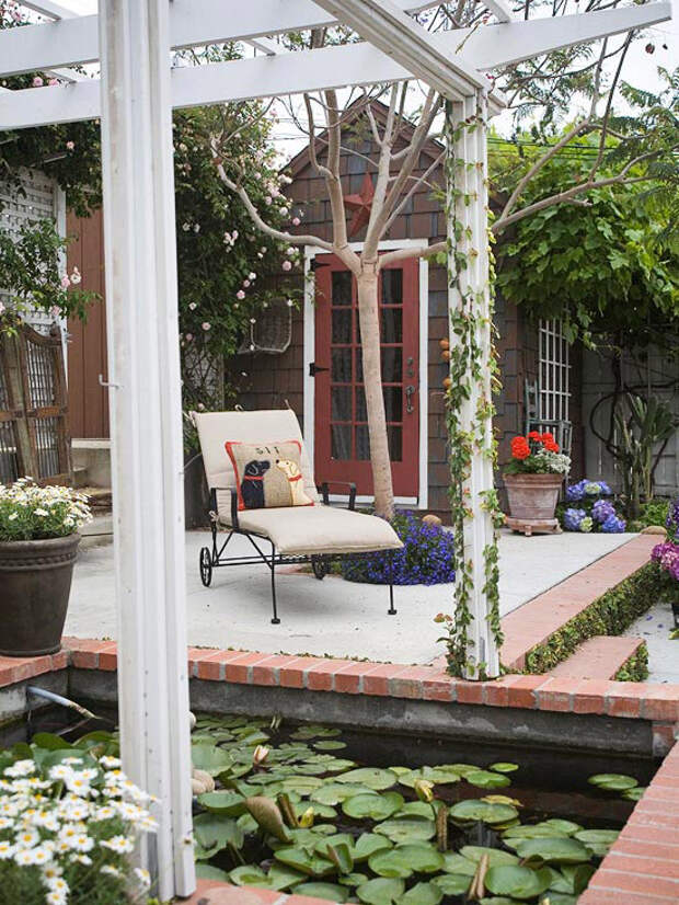 Вариантов водоемов для сада не так уж много. Это может быть пруд в деревенском стиле, с заросшими камышом берегами, либо же совсем уж небольшой водоемчик, созданный из деревянного корыта или кадушки.