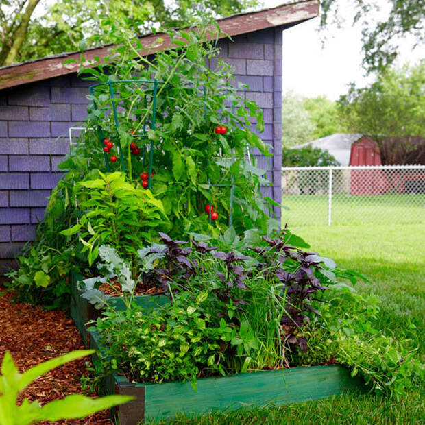 Кроме того, желательно отдать дань самым первым образчикам таких садов, посадив в нем пряные растения и сделав хотя бы небольшой декоративный огород. Грядки с салатом, петрушкой и луком выглядят привлекательно сами по себе. А если их украсить декоративной капустой и цветами, такими, например, как бархатцы или пиретрум, то выглядеть все это будет не хуже декоративной клумбы. В таком огороде можно содержать парник.