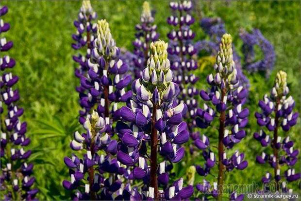 Люпиновые свечи полыхают сине-фиолетовым пламенем с белыми язычками.