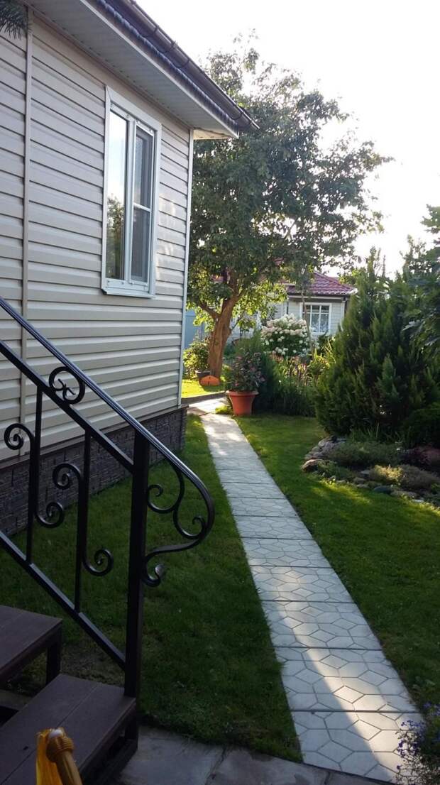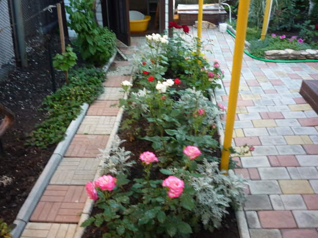 это битая облицовочная плитка и галька .С плиткой мне крупно повезло ,ей лет 30 назад отсыпали мост через речку ,а 3 года назад прорвало дамбу и и все оказалось в речке ,я сначала собирала целые плитки ,выложила уголок на даче ,а потом озарило и я перетаскала и битую и сделала из нее плитки ,мне самой очень нравится ,а до этого делала плитки только с галькой ,но по ней босиком ходить тяжеловато ,а по той что с обл. плиткой супер .А после дождя как на фото , аж настроение поднимается