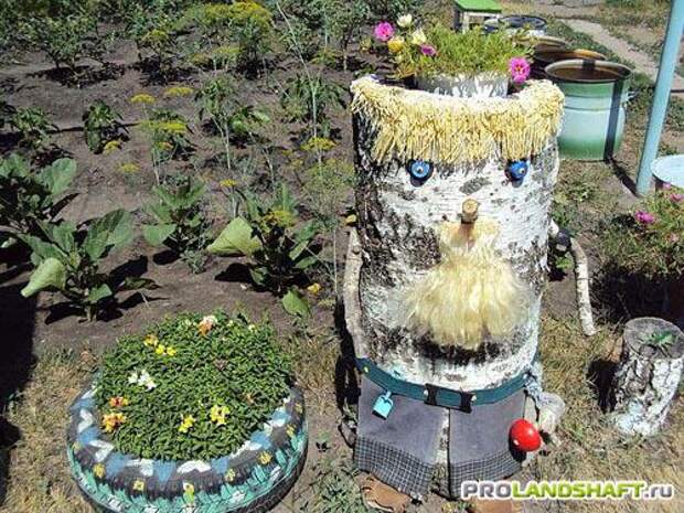 Пень Гришка. Материалы: березовый пень, голова от куклы (борода), старая одежда. Автор: Наталья Алексеева, г. Тамбов