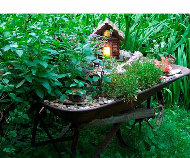 Для тех, у кого нет возможности иметь собственную дачу или участок, можно сделать вот такой декоративный мини-сад. Конечно, он не заменит дачный участок, но зато отлично оживит квартиру и вдохнут в нее глоток свежего «дачного» воздуха! Декоративные мини-сады можно разместить и на даче. Например, перед дачным домиком на крыльце или около прудика, фонтана, цветника. Они красиво смотрятся и дарят море впечатлений!