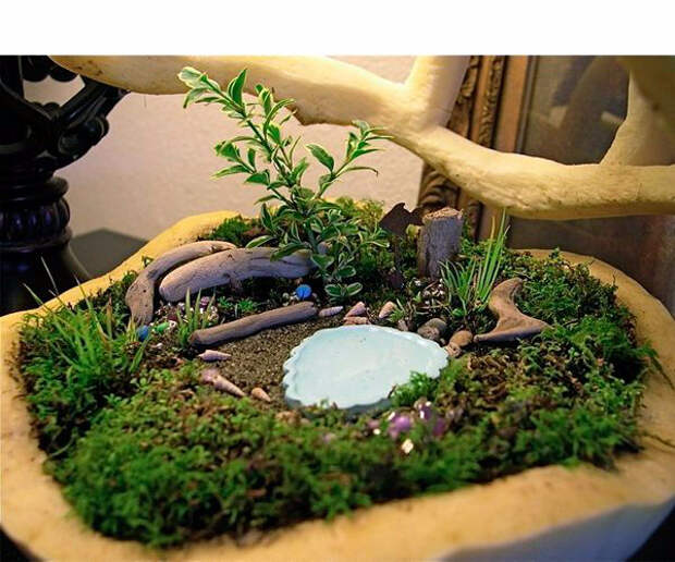 Для того, чтобы сделать миниатюрный садик своими руками нужен контейнер или емкость, где он будет находится. Подойдет даже цветочный горшок. В него нужно насыпать грунт, на котором будет «держаться» мини-сад. А дальше –все зависит от вашей фантазии! Декорировать сад можно самыми разными элементами. Например, можно посадить в нем сказочные деревья и цветы, разместить пенечки, мухоморы, скворечники или даже сделать водопад! Предлагаю вашему вниманию несколько идей для создания мини-сада: