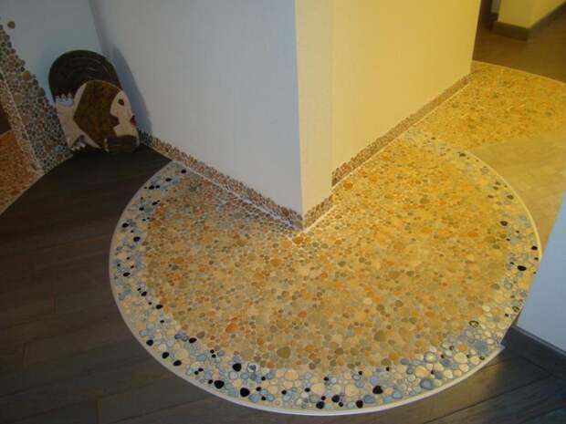 В идеале должны получиться полы равномерно заполненные речной полированной галькой без пробелов.