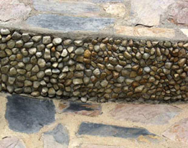 Если же остаются пустые места в углах, где большие камни не влезают, а колоть их не хочется, то стоит подобрать камешки помельче и вставить их в пустые места.
