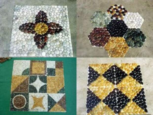 Галька (галтованный камень)-это материал, подходящий более для двора, чем для комнат. Во дворе пол из гальки вы вполне сможете сделать самостоятельно. Гальку выкладывают на бетонный раствор, узор из гальки вы можете придумать сами.