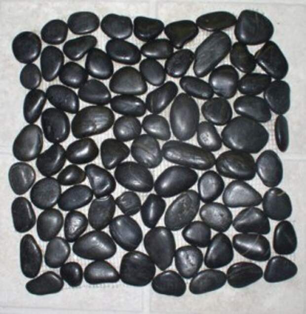 Сейчас использование гальки для изготовления пола упростилось, так как этот материал теперь продается на подложке из стеклосетки. В продаже имеются готовые наборы галечной мозаики с волнообразным и графическим рисунком.