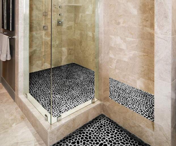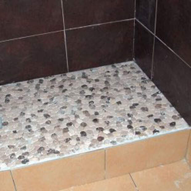 Надеюсь перед тем, как класть гальку на пол все работы по гидроизоляции были выполнены и можно не бояться протечек.