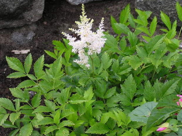 Астильба – многолетник, не требующий для своего развития яркого солнечного света. Если необходимо оживить тенистый уголок сада, можно посадить один из видов астильбы, уход за которой прост и не трудоемок, а декоративные качества достаточно высоки. Астильба прекрасно цветет в условиях недостатка освещения, обладает красивой ажурной листвой, что позволяет ей оставаться привлекательной в течение всего периода вегетации.Посадку астильбы предпочтительно нужно делать в богатую гумусом почву с близким залеганием грунтовых вод и полутенистое расположение. Сразу после посадки астильба требует обильных поливов в сухую погоду, и мульчирования весной и осенью. Корневища астильбы нарастают вертикально, поверхность со временем оголяется, поэтому на зиму растения необходимо прикрывать торфом. Для сохранения декоративности необходимы ежегодные подкормки, схема которых зависит от степени увлажненности почвы. Если она сухая, применять минеральные удобрения не рекомендуется, лучше использовать компост и торф. На влажных почвах весной растения подкармливают комплексным удобрением, а после цветения – фосфорным и калийным.