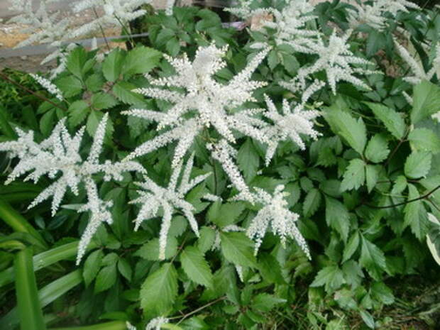 Астильба корейская (Astilbe koreana (Кот.) Nakai) – высотой до 60 см, с красивыми, слегка поникающими белыми соцветиями, имеет светло-зеленые морщинистые листья и сплошь покрыта бурыми волосками.