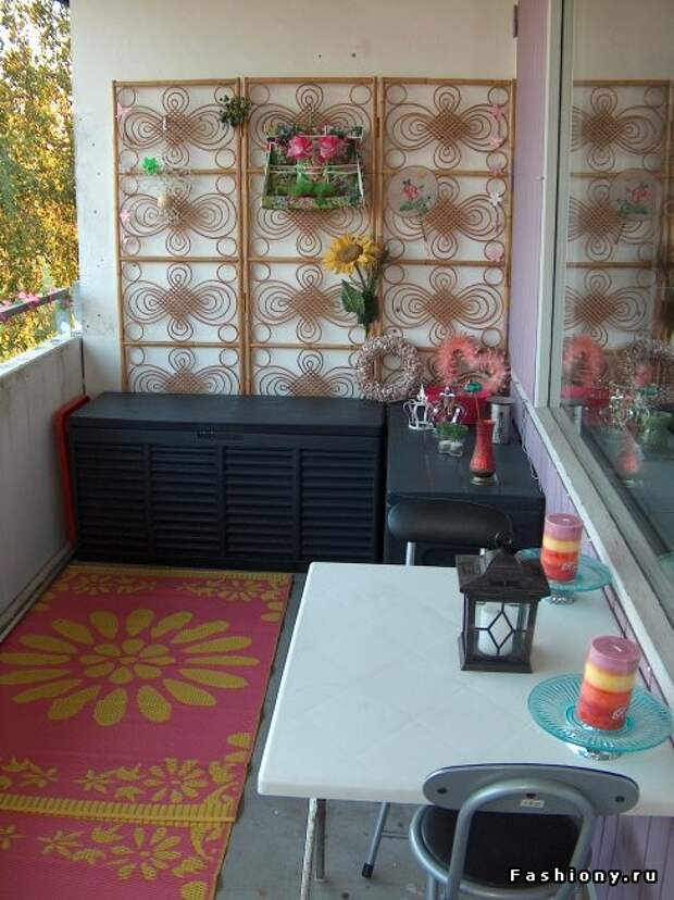 Для полного счастья можно украсить свои балкончик различными аксессуарами.