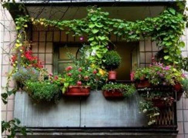 Цветочные ящики крепят к перилам балкона желательно с внутренней стороны, горшки ставят на подставки. Если вы желаете посадить весной на своем балконе вьющиеся растения, натяните для них бечевку или поставьте легкую деревянную решетку.