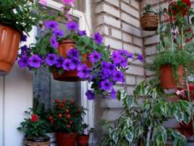 На балконе очень красиво смотрятся ампельные растения, например петуния, которая будет радовать вас своим пышным цветом целое лето. Используйте на балконе для ампельных цветов настенные крепления, подвешивая их на удобной высоте.