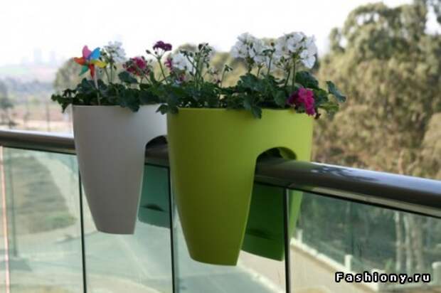Сегодня огромное разнообразие цветочных горшков. Теперь это не простые глиняные горшочки...Теперь их можно закрепить за тонкое ограждение балкона.