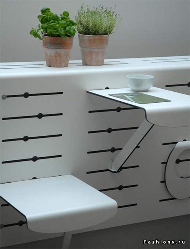 Можно за подоконник прикрепить специальную панель. Ею легко пользоваться: когда необходим столик со стульчиком, они легко крепятся в отверстия панели, и так же легко отсоединяются.